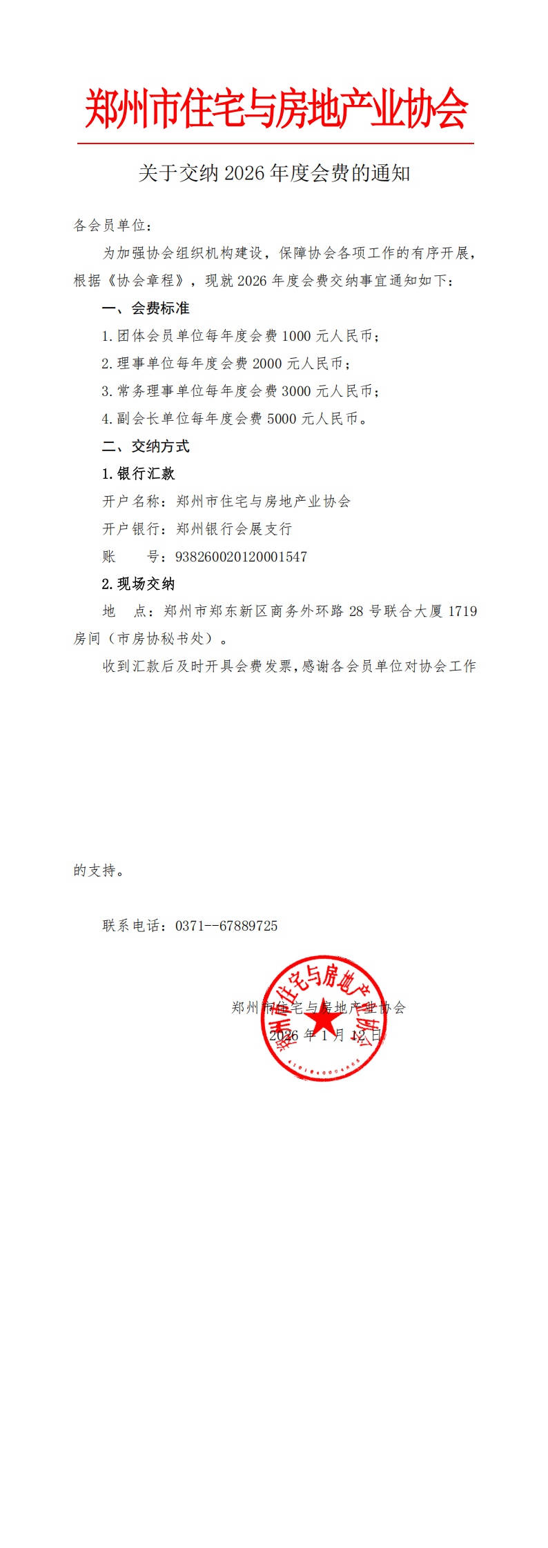 关于交纳2026年度会费的通知
